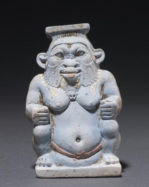 Bes was the god of childbirth, humor, and war, and he protected pregnant women and infants. He was also the god of cosmetics, demonstrating the conceptual overlap between beauty and pregnancy.15 Artists depicted him on cosmetics jars.