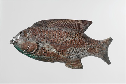Unknown, Cosmetic Dish in the Shape of a Bolti Fish, ca. 1479–1425 BCE. Metropolitan Museum of Art. Cosmetic palettes in the shape of bolti fish were popular in the Predynastic period.