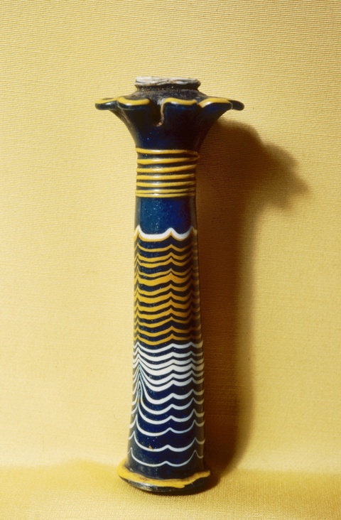 Glass kohl tubes were all the rage in New Kingdom Egypt. Glassmakers designed them to resemble palm-shaped columns, a common Egyptian architectural element.