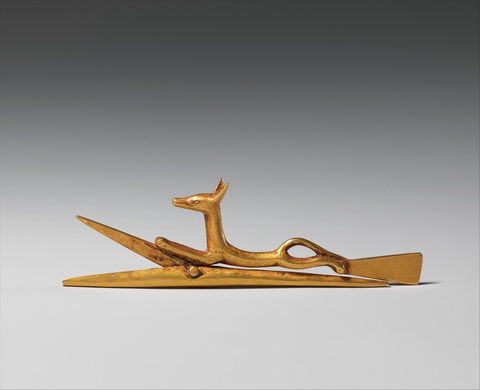 The cosmetic spoon pictured here represents a woman swimming. She’s holding on to a gazelle, which forms the bowl of the spoon. Some scholars speculate the gazelle is her pet.23