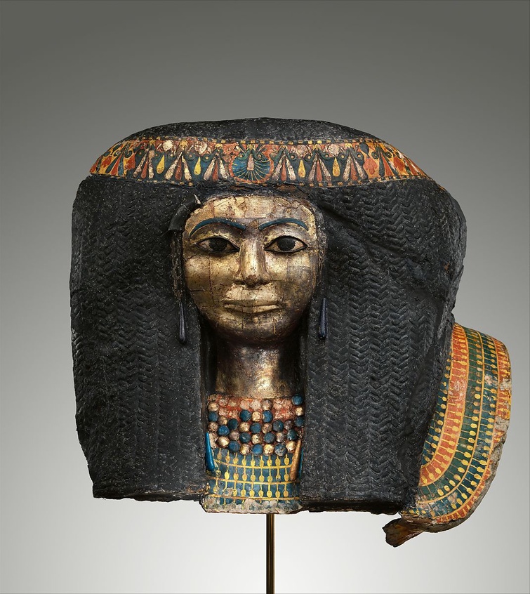 Unknown, Funerary Mask of a Woman, ca. 1427–1390 BCE, New Kingdom, Egypt. Metropolitan Museum of Art. Egyptian funerary masks ensured the deceased's safe passage into the afterlife.