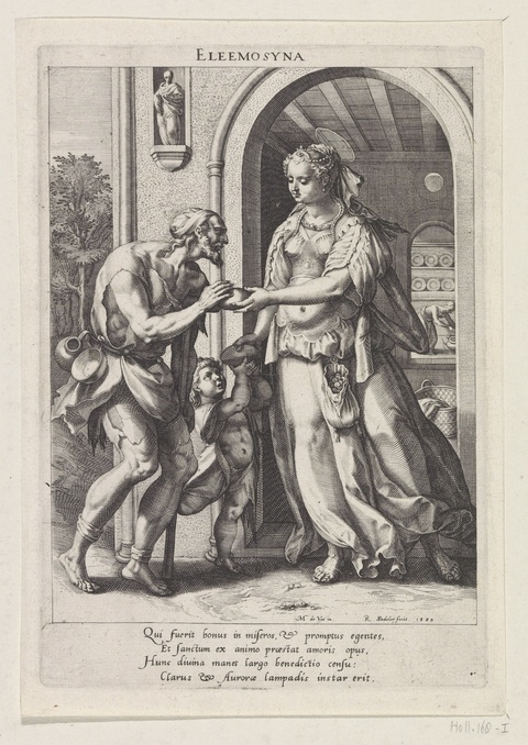 The saintly quality of these images may not have been incidental, or merely the result of self-aggrandizing elites. The church in Europe encouraged charity as a core Christian virtue, while greed, or avarice, was depicted in Christian-inflected art and narratives as a mortal sin. In this work by Raphael Sadeler, the virtue of charity is personified as a wealthy woman handing out loaves of bread to impoverished people at her doorstep.