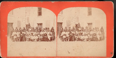 Richard Henry Pratt and The Florida Club of St. Augustine, Indians at Fort Marion, 1840-1924. National Anthropological Archives, Smithsonian Institute. Group photograph of Native Americans of various tribes at Fort Marion, Florida.