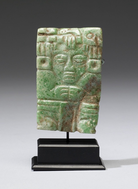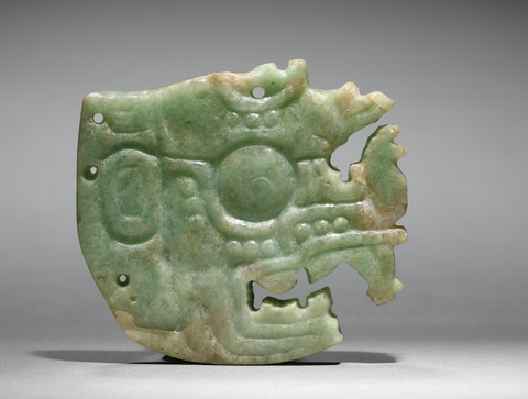 Unknown, Crown Ornament (Hu’unal), 250-900. Cleveland Museum of Art. In Mesoamerica, elites wore jade on their royal garb as a connection to the spiritual realm.