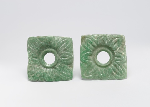Ancient Maya nobles used beads or sticks to keep the hollow flares in place in their earlobe holes. Polished jade emits a sonorous, metallic sound when struck. Ancient Maya people also believed that jade emitted perfumed breath. Ancient Maya people likely regarded these flower-shaped ear flares as living beings emitting sound, scent, and moisture. Wearing ear flares was thus a sacred sensory experience.34