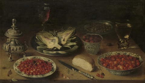 The VOC played a central role in bringing both natural specimens and crafted goods—from shells to textiles—into Europe through its trading posts. Among the most significant imports was Kraak porcelain, produced in Jingdezhen specifically for European buyers.4 The name “Kraak” is thought to derive from “carraca,” a type of Portuguese merchant ship, underscoring the entangled routes of maritime trade. These porcelain wares often bore floral motifs and Buddhist emblems that appealed to European tastes, almost always in blue on a white background (as in the examples shown above), and were among the first porcelains to be mass-imported to Europe. They quickly became fixtures in Dutch still-life painting, where they signified wealth and global reach. Export wares such as this demonstrate how Asian makers and communities found ways to profit within this trade, though rarely on equal terms.5