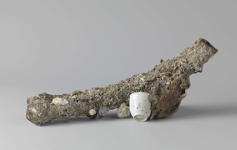 Fragments from the wreck of the VOC ship Witte Leeuw offer an intimate glimpse into the types of cargo they ferried from port to port. The ship sank off St. Helena, an Island in the South Atlantic, in 1613 on its return from Asia. Among the wreckage was a porcelain cup, likely from Jingdezhen, fused over time to rusted iron in a haunting merger of Chinese craft and Dutch colonial ambitions.3