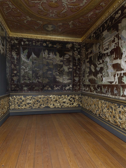 One of the most striking examples of this obsession is the Lacquer Room from the palace of the Frisian stadtholder in Leeuwarden, built before 1695 and now conserved at the Rijksmuseum. Part of the private apartments of the Frisian Stadtholder’s family, the room is lined with imported folding screens made out of Chinese Coromandel lacquer that were disassembled and reset as wall panels.18 Stripped of their original sequence, the scenes no longer tell a story; they function instead as a shimmering atmospheric backdrop.