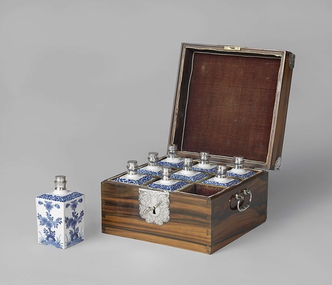 Unknown, Chest with Nine Bottles, c. 1680–1700. Rijksmuseum. Many keldertje, or small chests, are made of materials originating from the areas that the Dutch colonized and were often given as gifts to dignitaries of those nations.