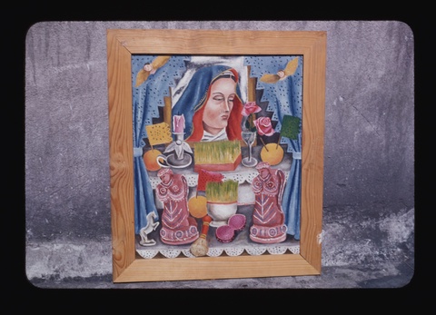Florence Arquin, Photograph of María Izquierdo’s “Ofrenda,” undated. The Arquin Slide Collection, copyright undetermined. Arquin, an American photographer who frequented Mexican cultural circles, documented several of Izquierdo’s paintings.